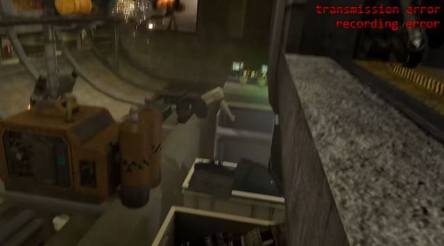 此时他的视角被一阵绿光干扰,他的视线右上角出现了“transmission error”“recording error”的红色字样,意思是传输错误和记录错误
