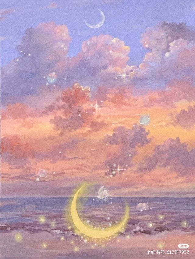 未完全褪去的弯月挂在天边,初生的一轮太阳泛着红光,将远方的一片鱼肚白渲染成橙红色,天空与海面相互映衬,交织着,融合着