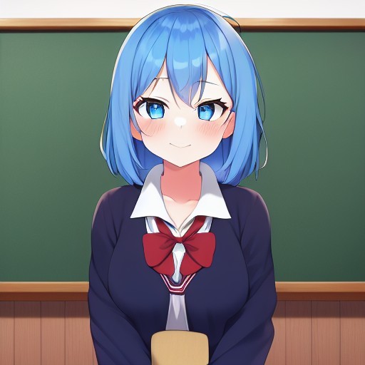 老师还没有来的早自习,讲台上有个女生,蓝色头发,蓝眼睛,面对着全班同学又要宣布一件事情了。