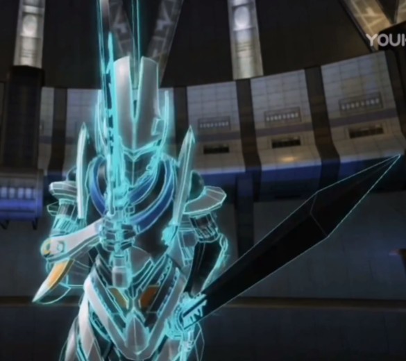 手中持有奇特长枪的男子就这么浮在晴朗无云的空中俯瞰地上的一切,他被面具遮住的脸庞下,那双似乎穿透一切的双眼仿佛可以看透世间万物,一切在他的眼中都显得没有任何的遮掩。