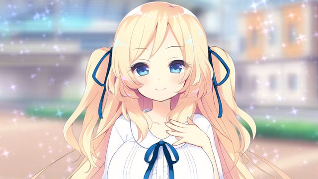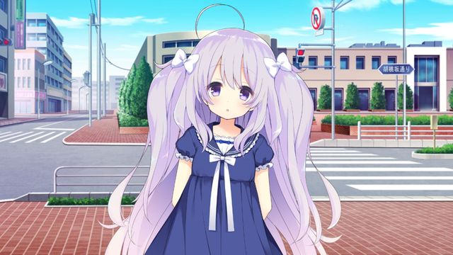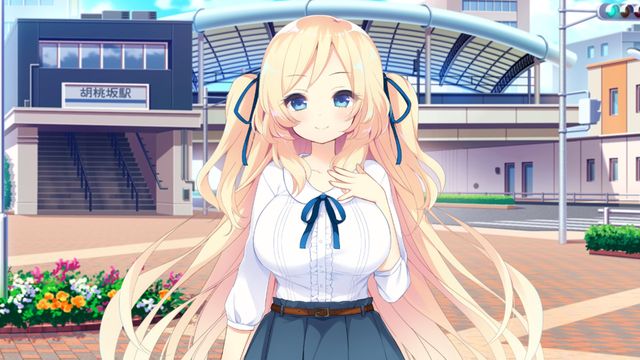 柚姬穿着七分袖的衬衫,搭配上简单的裙子,给人一种比制服更素净的印象,深色的裙子,和胸口、头发上系着的缎带,与柚姬洁白的衬衫、金色的发色映衬得很漂亮