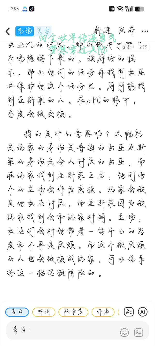 林州在发现了这个事情之后,又继续跟了他们一会儿发现那个女生确实和亚斯莱对换了立场。而且他还发现在亚斯莱看不到的地方,那个女生。,因为这是一个女巫的世界,也是一个全新的世界,原先的规则和道德法则已经不存在了。他很好奇女巫的世界能够做什么呢?既然他看到了能够随意伤害别人,并且没有被其他人训斥,那么就是说有没有一种可能女巫的这个世界是可以杀人的?这个想法还需要证实。在继续更了一会儿之后,发现没有其他的收获了,他就回到了自己记忆中。在的房子里。到这个房子里的时候,他倒是没有太多的想法。因为在外面游荡的时间有点久了,所以回到房子里面看到一切温馨的布景。他还是觉得有点不真实的,灯光有些晃眼,他眨了眨眼睛,坐在了一个凳子上。思考着这一天下来收获的线索首先比较明确的已经确定了。系统给的任务。找到亚斯莱并保护他,这个任务已经有人开始做了而现在他知道的事情是第一个找到女巫的人会和女巫转移立场。但是这其实是有个条件的,他并不知道,那么其他去保护这个女巫的人会不会也和第一个找到亚斯莱的女巫是一样的下场但这一点其实明天的时候就可以证实了,因为亚斯莱既然不被其他女巫排斥辱骂的话,那么就说明他明天也会出门,而作为玩家的那个女生,即使被女巫给排斥和亚斯莱对话的那场,但他是第一个做任务的人他不会放弃,他是第一个找到亚斯莱并做。任务保护亚斯莱的人的这个身份,因为据他的经验来讲,第一个找到的人和做任务的人奖励相对来说会比其他人高一些。而且玩家其实并不是很在乎他们的立场之类的,只不过因为这个立场问题可能会让其他PC对他们有些偏见,但只要不太影响主线的话,实际上是没什么问题的。所以其实林州现在并不着急,因为这件事情明天早上的时候他就可以证实的,毕竟又不是他一个人想要做这个任务,肯定还有其他人也会想着做这个任务,只不过他们并没有找到亚斯莱。所以明天的时候肯定还有人会去做任务的而到时候他只需要观察其他女巫对于第二个玩家的态度就可以了。然后想到玩家的事情,他又想到了那个顾景晨他其实并不觉得顾景晨和他是互利互惠的。而且相对于顾景辰并不知道他的面板到底是怎样的。只凭一句他脑子很聪明,这句话实际上是并不可信的,但是他们已经定下了契约这件事情已经是一个副本的事了,但是他也知道了,他们现在说实话也没有很信任彼此,即使有了契约,知道对方不能背叛自己,但他们还是做不到。彼此共享消息之类的。主要就是因为他们不太清楚彼此的实力,他大概只知道对方一个模糊的实力,因为对方告诉过他,他排行第九这个就可以确定对方的面板应该是算是不错的那种,毕竟能排到第九面板应该能差到哪里去?而现在林州有点担心的是顾锦州不算是把他当做伙伴之类的,因为上个副本的时候就已经能看到他们彼此的态度其实并不是特别熟。交流之类的,其实在副本当中也没有,但如果这么做的话,那就相当于有一个绑定队友跟随机队友其实没什么太大的区别,默契这种东西果然还是要靠副本磨练出来。但是他们并没有磨练的时间,因为他们现在副本的难度在一个一个逐步上升。即使契约当中副本里面等级也是以他和顾景辰之间的等级为一个平衡。系统才选择的副本,但实际上来说这个副本选择就是对他来说。如果他真的是一个新手小白,说不定早就已经死在副本里了,而对于顾景辰来说,副本是比较简单的,对他来说副本是比较难的,而他们两个没有太大的交流合作,那么就极有可能产生一种对方能够顺利活下去,自己却陷入绝境的问题。