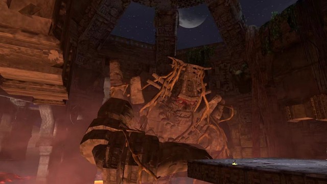 目前的情况原路返回是不可能,大家提高警惕,左右环顾着来到了这座平台之上,在这个巨大的神像之前,大家显得非常渺小,令人感到了一种庞大的压迫力,这时影子问天耸了耸肩膀说