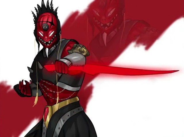 一只咖啡色的皮肤,头部形状乌鸦头,头顶有一棕色发辫束于脑后,身上披着灰银色的盔甲的怪物首先出现