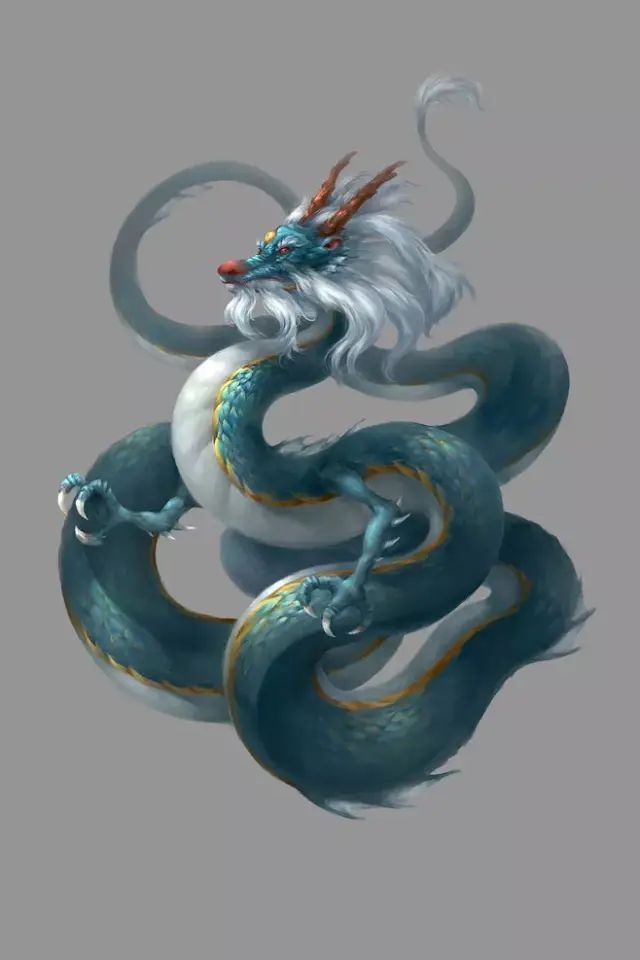 通红的虾眼,视察万物。睁眼天地为白,闭眼天地为暗。修长的黄色鹿角,尖锐无比。牛嘴含獠牙,撕扯钢筋不在话下,狗鼻通灵嗅方圆百里之味。鲶须细长随风起舞,狮子一般的鬓发显点老气,蛇一样的尾巴粗壮,横扫八方。鱼鳞般的鳞片泾渭分明,八个鹰爪,能撕碎任何坚固的东西。
