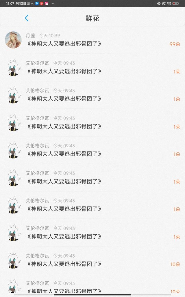玫瑰:谢谢月瞳的99多花花🌹