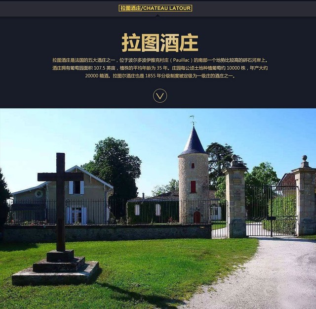 导游:章小姐,林先生,主要是因为咱们要参观的地方是酒庄中的传奇。法国五大名庄之一的拉图尔酒庄。这是一座拥有有300多年历史酒庄,它始建于路易十四时代,就凭这份深厚的底蕴,就值得我们顶礼膜拜。