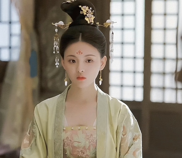 明兰穿着一身华丽的正红色衣裳,发髻也换了新样式 ,小桃为明兰上好妆,最后簪上步摇