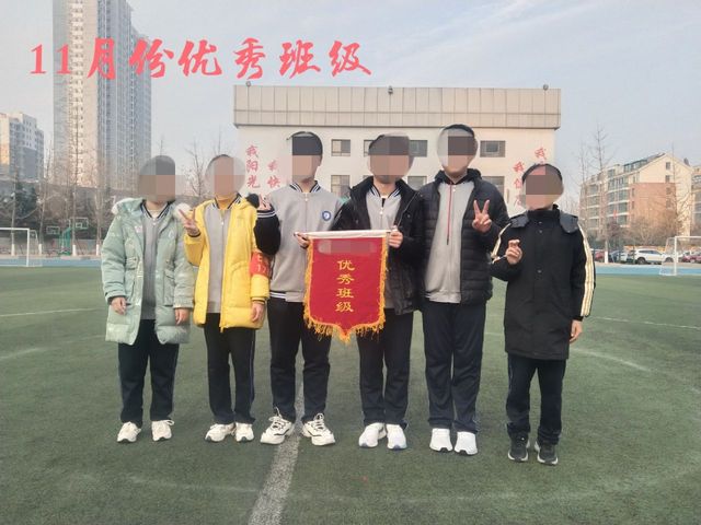 今天升旗仪式上评选了11月份的优秀班级,我们班也在其列。升旗仪式结束后,老师给班委们合影。我是真的羡慕,我也想拿着锦旗比着耶对着镜头笑,可惜我不是班委。(原是我不配 抽泣ing~)