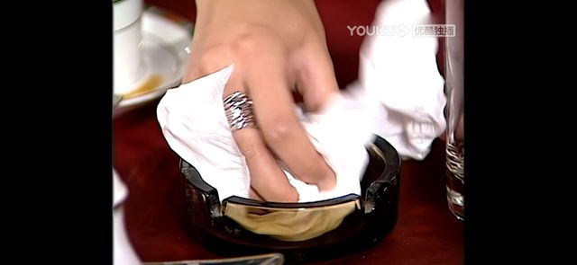卓琪:sorry啊(急忙抽出纸巾擦桌上的水渍,在擦的同时把烟灰缸里面的口香糖拿走)