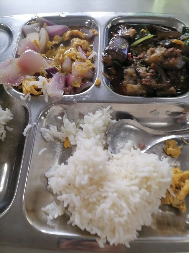 3:午餐~肉沫茄子+洋葱炒鸡蛋,其实我真的不爱洋葱,完全迫于没啥好菜了,炒鸡蛋我挺爱吃的,不过今天中午有粥,但其实这个粥是早餐剩下的。肉沫茄子一如既往的好评,粥既冷又不甜。