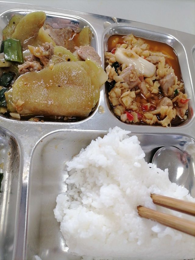 3:午餐~罗卜丁炒肉+瓜炒肉,老实说我不知道是啥瓜,我最开始以为是土豆片,结果不是。