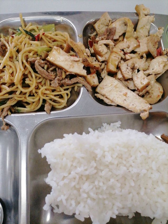 3:提前了3分钟下课,我和室友3一路狂奔快速吃午饭~炒豆干+炒面。