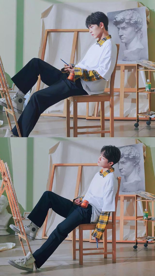 另一边,顾然坐在美术室,眼前是还没有画完的画,但他的注意力都在一旁的手机上。他低头看着手机笑,嘴角的弧度越来越清晰。