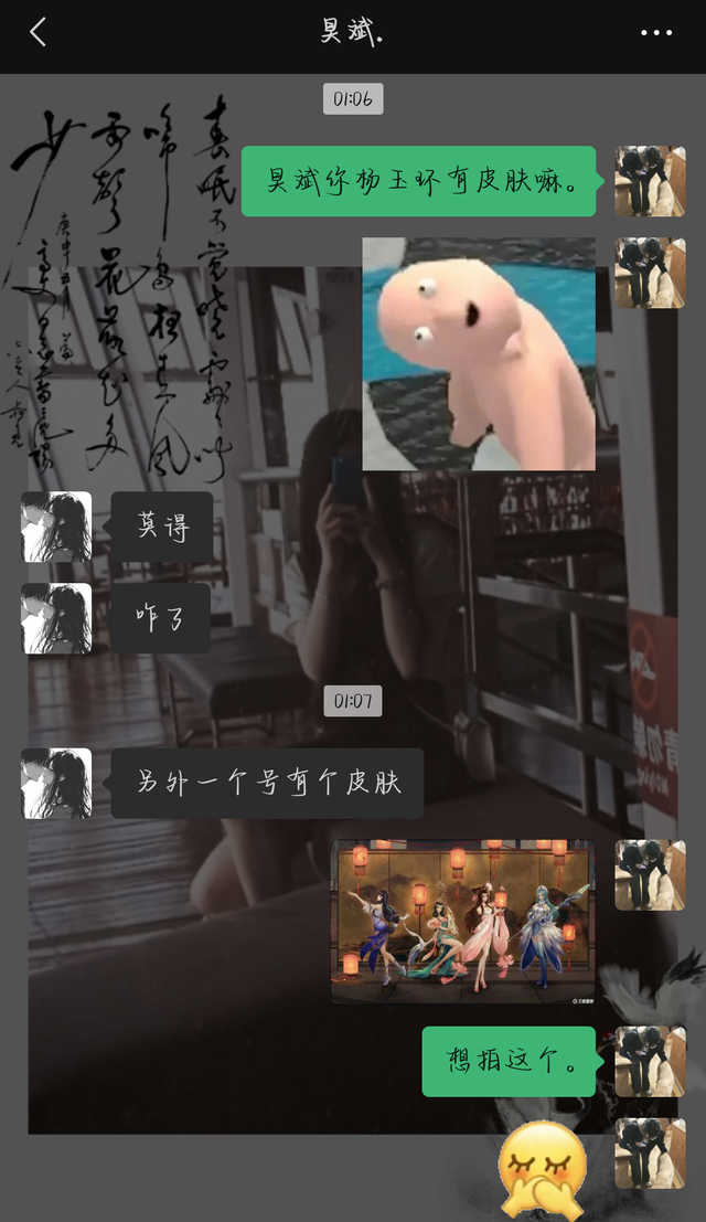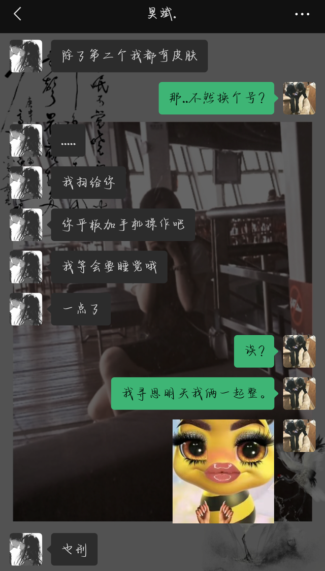 题外话.安彤儿和黄昊斌现在的微信头像是一对闺头,是当时安彤儿刷视频看到了之后很喜欢,但是陈禾媛对闺头不咋感冒而且还有点阴影,所以她没陪安彤儿用。