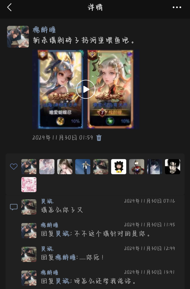 然后十一月月底当天晚上十一点多的时候黄昊斌给她发信息了,问她打不打游戏。