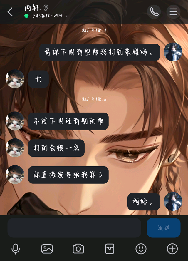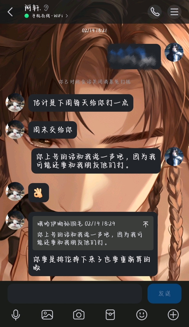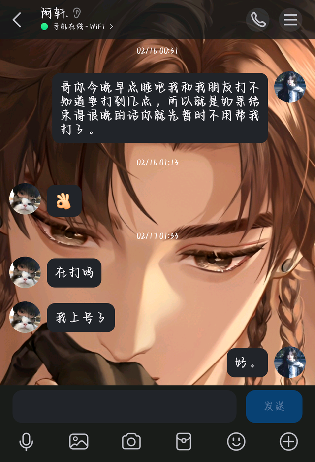 别问为什么阿轩七点多刚过的信息安彤儿十点多才回..因为她又切去小号边摸鱼边码字了,不是后面码完字了要出单了去找单主的话,安彤儿压根就不可能切回大号去翻列表。