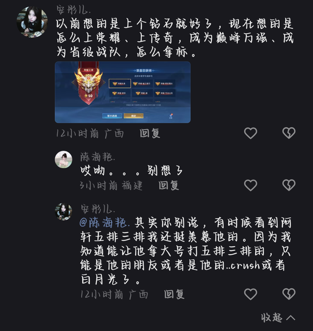 安彤儿的荣耀称号里有阿轩本命的称号..