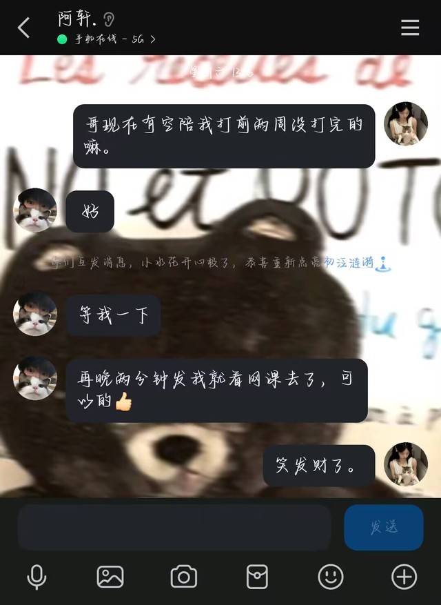下午一点多,安彤儿去问陈禾媛和苏星昉,自己能不能戴上红鼻子去问阿轩有没有空带她上分。