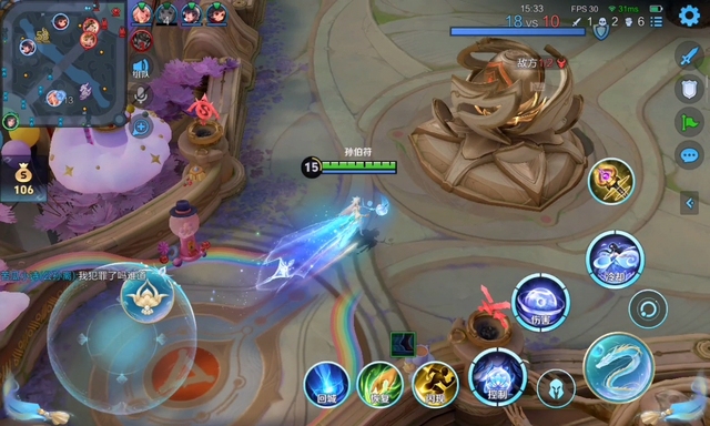 局内十五分钟准备十六分钟的时候,我方找到机会马上一波了,还差一点就能把水晶点掉了。