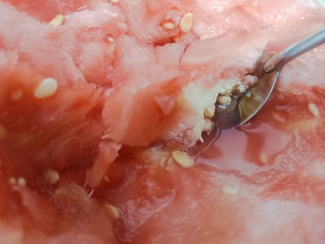 看得出来的吧?比平常的西瓜颜色要淡很多。