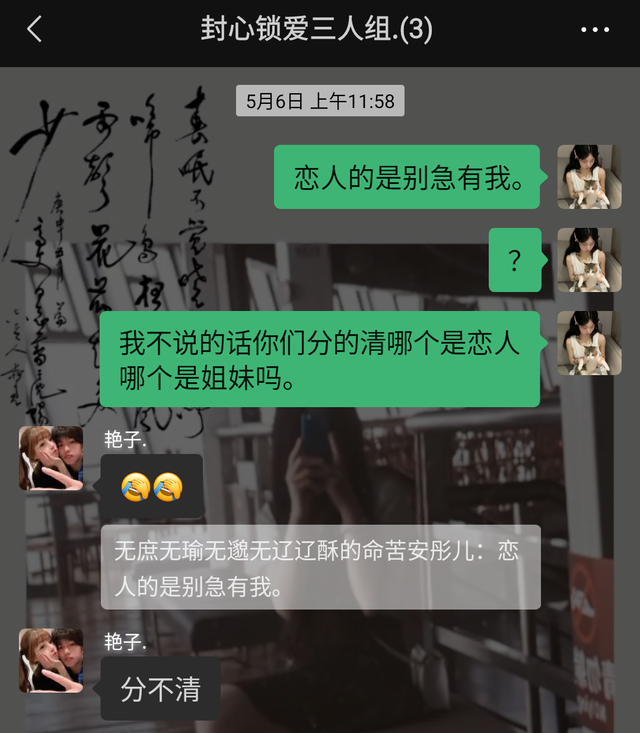 安彤儿.“恋人才是别急有我,姐妹才是我想跟你一起呀,我操那既然这样子的话我当时让他给别的辅助发这个,他他妈为什么说不啊?他为什么说那不行啊?”