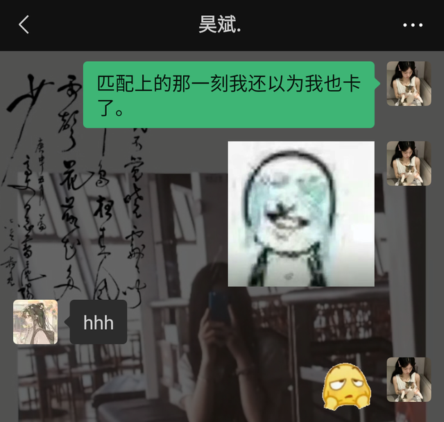 匹配上的那一刻因为掉帧了嘛,所以安彤儿以为自己也卡了给她吓一跳。