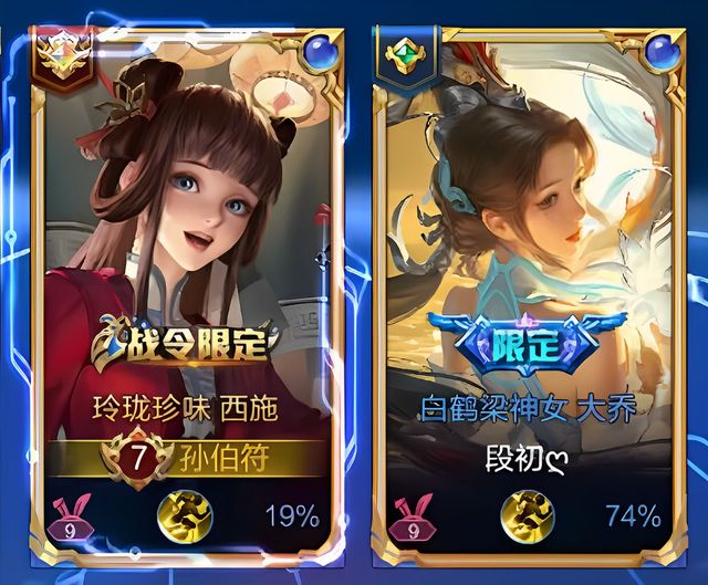 安彤儿露娜差一个一生所爱全皮,大乔差一个白鹤梁全皮。