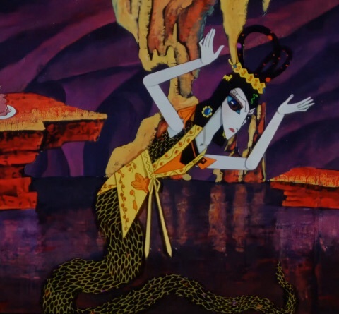 随着金蛇精的尾巴上的鳞片褪下,金蛇精也开始了痛叫