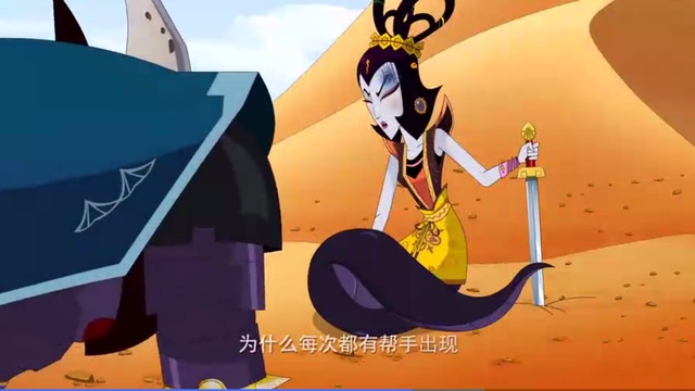 青蛇精从百宝锦囊中变得铁爪还被三娃破解,扔了回来,还夹住了她的蛇腰,弄得狼狈不堪