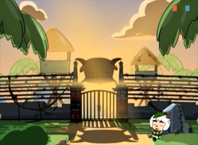 不知道羊村的食物是否特别的美味,反正瘦羊羊吃了羊村里的食物,感觉心情特别的好,瘦羊羊吃饱喝足以后便开始在羊村的铁门外来回巡逻。
