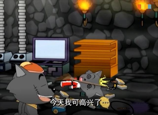 或许是因为之前灰太狼被红太狼欺负的太狠了。如今红太狼晕倒,他直接用脚重重的一踢,晕倒的红太狼碰到了书架,书架上的书散落了一地,就然扫帚也不小心倒在了晕倒的红太狼身上,开心的灰太狼就直接跑出去了。