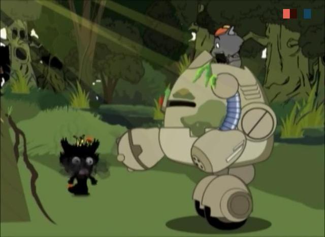 【灰太狼开着他的机械战警笑嘻嘻的走在丛林当中,一边走他一边幻想着他开着他的机械战警来到羊村大肆的搞破坏,而喜羊羊他们对此毫无办法,只能四处逃窜,而就在此时,我们也得知灰太狼的机械战警不光装有炮火,它胸前的那个红色装置并非是装饰,而是激光。