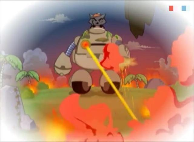 灰太狼刚抬起机器人的手臂,但是没想到他一个用力将操作杆给扯断了,刚刚抬起的手臂直接落下而且开关刚好冲着红太狼,红太狼就这样受到了无妄之灾!