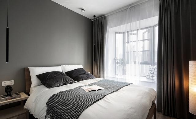 清晨的微光暖洋洋的,透过落地窗洒在了卧室的床上。