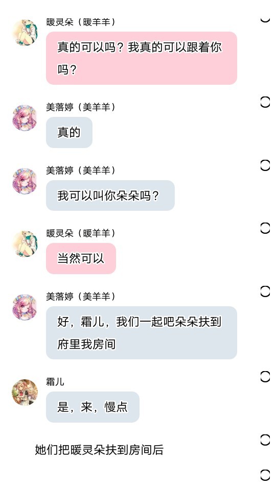 美落婷(美羊羊):朵朵,这就是我的房间,你就和霜儿一样,可以随时出入我房间,另外,我还会给你安排一个房间