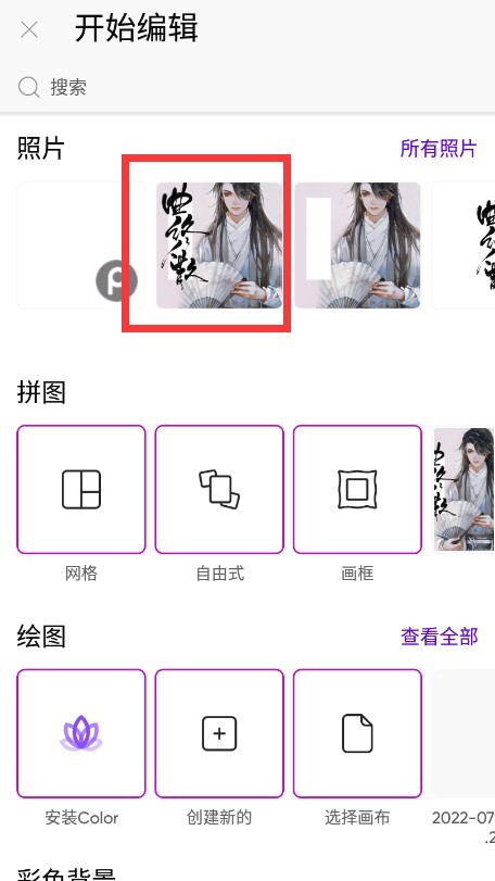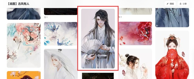 阿墨:首先打开花瓣app,搜索古风底图(我们这一次的教程以有人物的为例),如果你之前按照我的教程建立了古风底图画板并且收集了一些素材的话,那就直接打开你的古风底图画板。