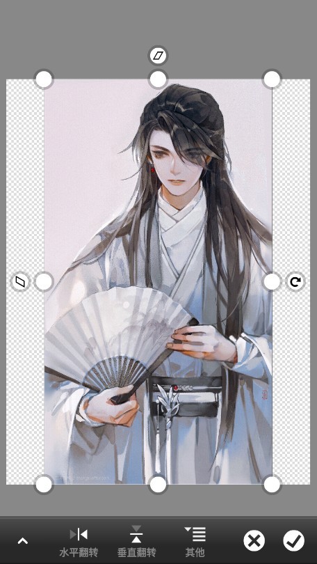接下来我们添加字素图片,为了教程方便,我直接在花瓣找了个九歌大佬的字素,导入后放大移动到你觉得合适的地方,点击右下角的“√”