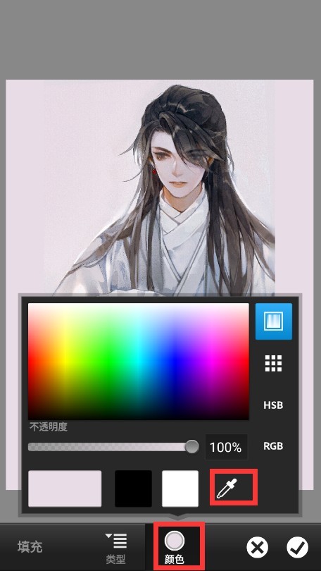 点击颜色,然后取色,用吸管吸取底图上面的颜色,然后点击右下角的“√”。