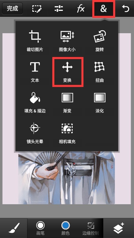 点击右上角的“&”,点击变换