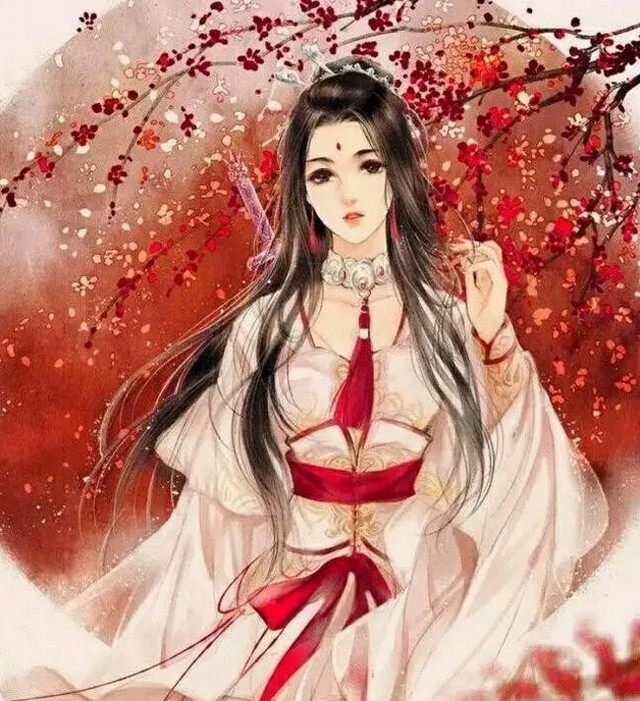 白衣 红饰 黑发.