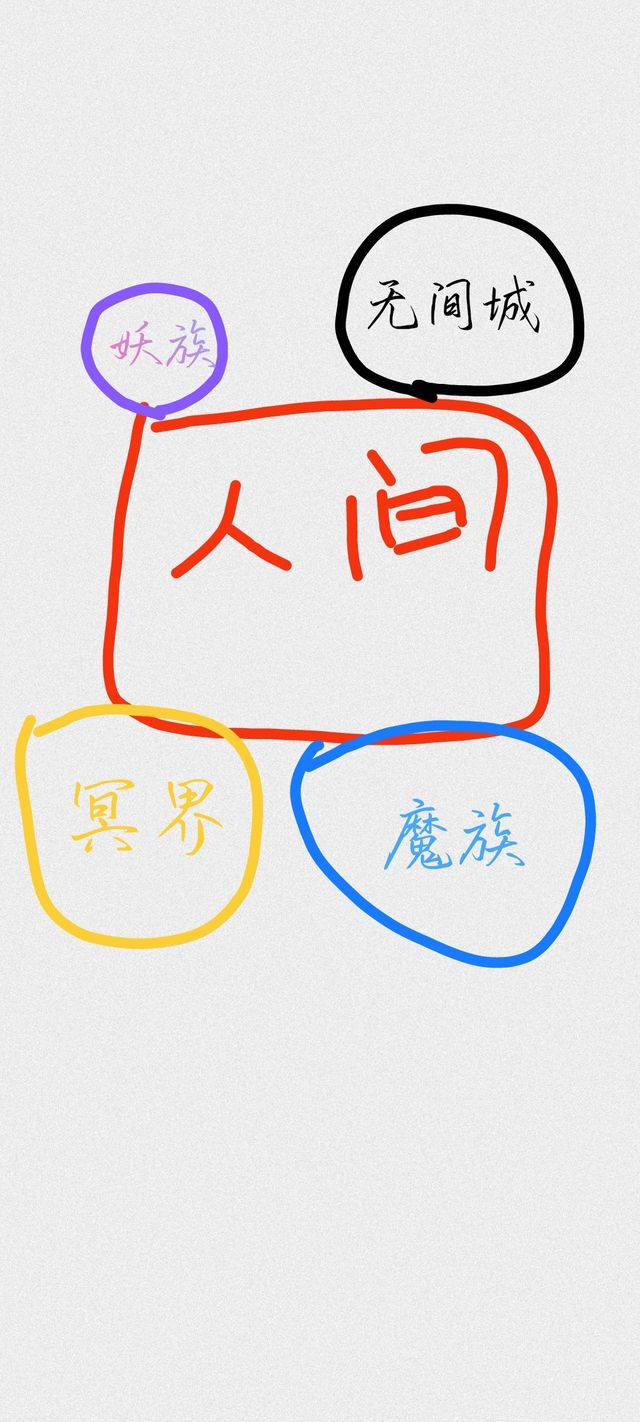 人间和各族是被划分开的,人间地盘最大,如图(以后如果有改动则以新的为准)