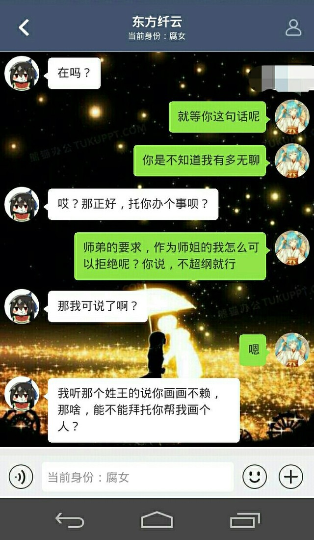 以上是我与我师弟在名*朋友圈里的聊天记录。(因为师弟木有微信也木有QQ)