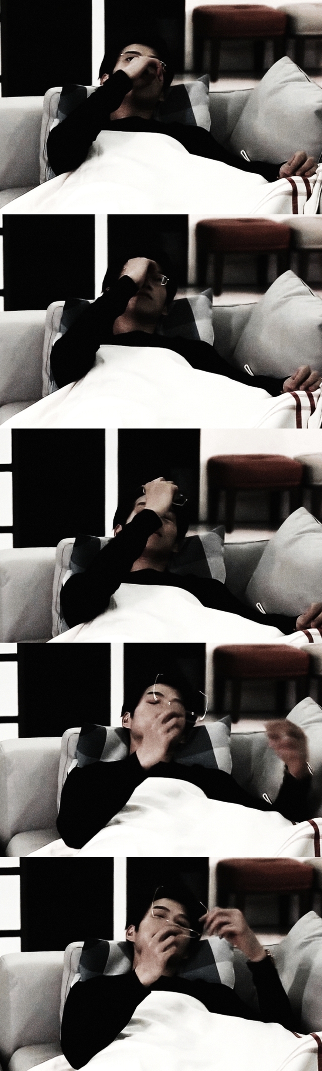 还若下意识往他怀里靠了靠,看着他随手拿起床头柜上放着的文件,修长的手指时不时翻阅着,镜片后的目光十分专注。