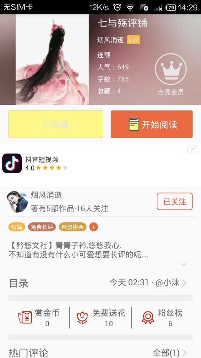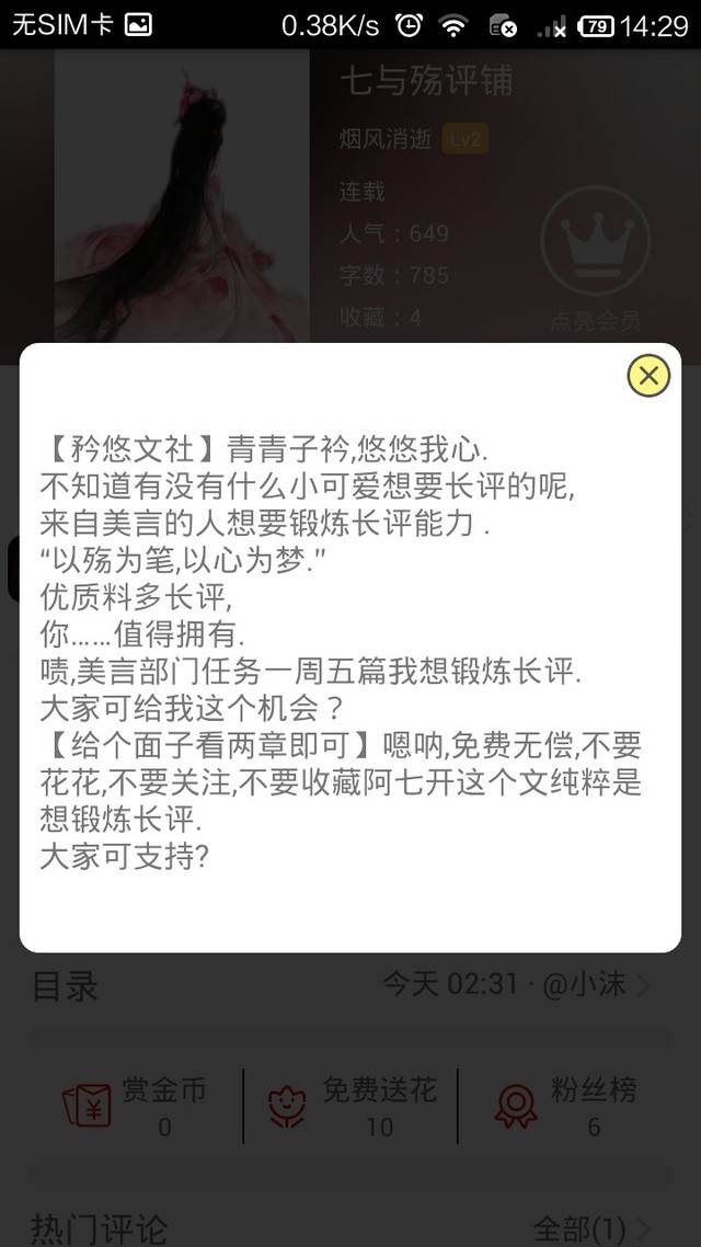 烟风消逝:我最近加了一个文社进入了长评