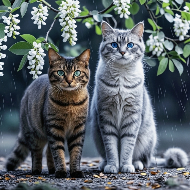 正思索间,头顶忽然传来一阵“哗啦啦”的声响。我抬头望去,只见槐爪正吃力地攀附在枝干之上,她的目光却紧紧锁定在眼前那簇盛开的槐花上。透过细雨蒙蒙,槐花更显皎洁鲜妍,似乎正散发着柔和而纯净的光芒。