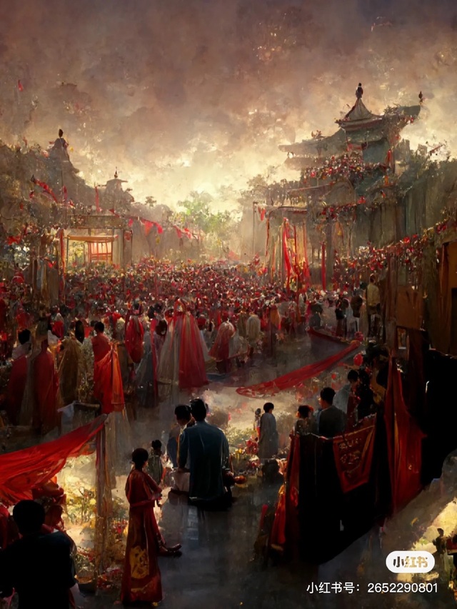 此时府里府外人头攒动,络绎不绝,每个人脸上都挂着喜庆的笑颜,祝贺这场难得一见的盛大婚礼。