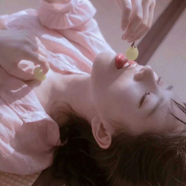 她躺在地垫上,拿起一颗提子,缓缓的送入口中。