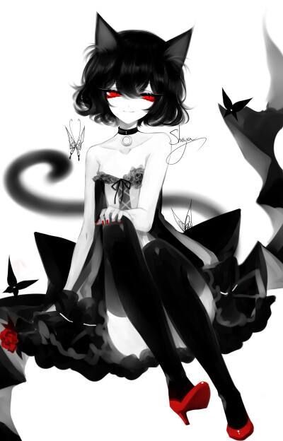 魔偶变回了人身,坐在了讲台上,大部分黑色色彩促使红色双目和红色高跟鞋有醒目的刺激性。