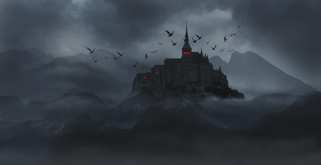 被包围在巨大黑雾中的古堡显得更加神秘,每个窗口亮着的暗红色灯光更是给它增添了更多的诡异色彩